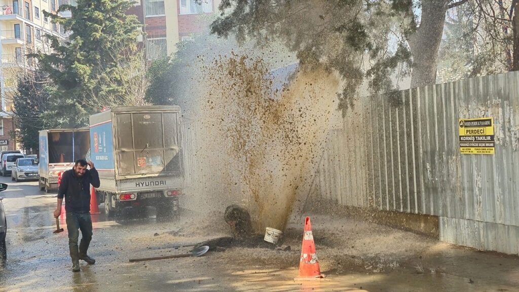 İstanbul’un Kadıköy ilçesinde bir inşaat alanındaki çalışma sırasında İSKİ’ye ait ana isale hattı patladı. Borudan fışkıran metrelerce yükseklikteki su, çevredeki